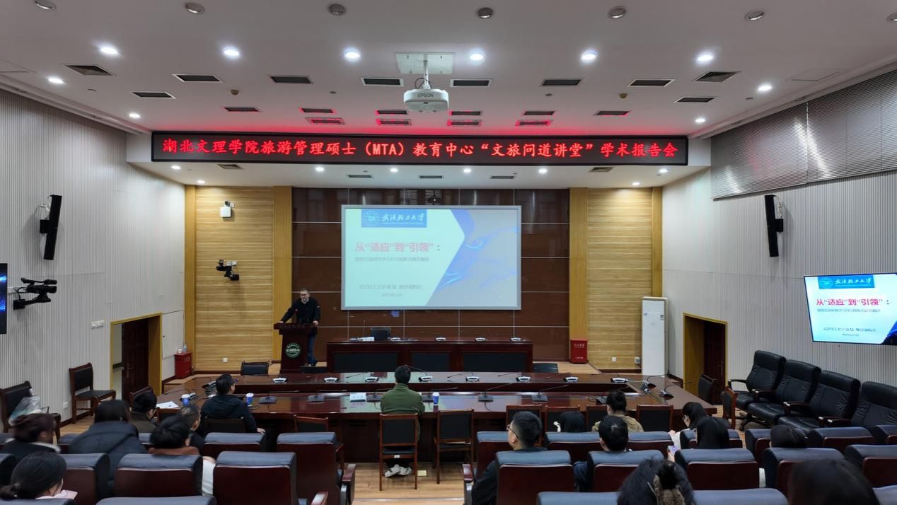 (通信员 黄婷)2025年12月5日上午,MTA研究生学术节“文旅问道讲堂”学术报告会在校图书馆一楼报告厅成功举办。讲堂以“数智赋能·区域洞察·创新引领”为主题,聚焦文旅前沿与地方发展,汉江研究院青年博士、MTA研究生、旅游管理专业师生参加,汉江研究院执行院长朱运海主持。