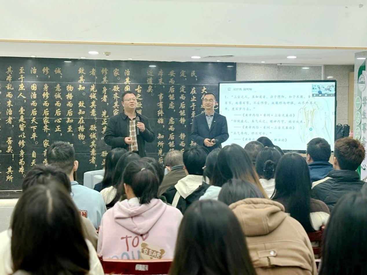 在“践行经典”环节,王红俊从个人、学校、国家三个层面探讨了“康”的当代实践路径。个人层面,他以广西巴马“世界长寿之乡”为例,阐释了顺应自然、回归本真的生活方式对健康的重要意义。学校层面,他强调了“运动塑造健康青春”的育人理念,介绍了学校推进运动校园建设的举措,旨在增强学生体魄、锤炼意志品质。国家层面,王红俊解读了“健康中国”战略所蕴含的“人民至上”价值导向,指出“康”已从个体健康延伸至全民安康与国家兴盛,展现出深厚的时代内涵。