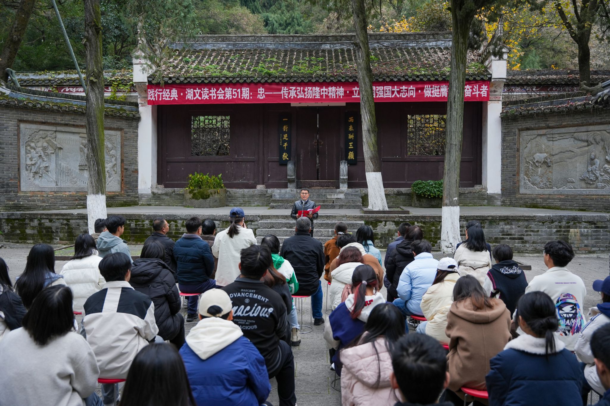 (通讯员 卜润慧 李典鹏)12月4日,学校联合湖北襄阳隆中文化园投资有限公司,在古隆中景区举办第五十一期“湖文读书会”。本次活动以“传承弘扬隆中精神・立报国强国大志向・做挺膺担当奋斗者”为主题,将读书会课堂移至历史现场,通过实地、实景、实情的沉浸式教学,引导师生深刻感悟以“忠”为核心的中华传统美德。学校党委书记吴超仲、副校长秦军荣、党委副书记王瑶珺,湖北襄阳隆中文化园投资有限公司董事长罗圆等出席活动。