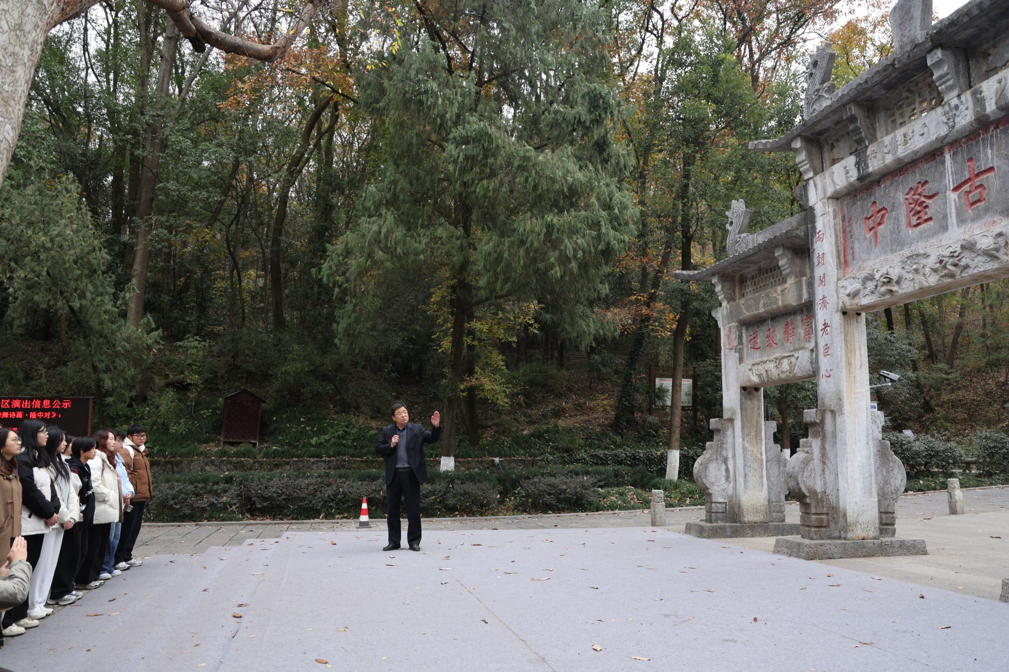 实地教学现场,师生们循着先贤足迹,在古隆中牌坊前,学校文学与传媒学院高新伟教授追溯“古隆中”正匾的历史底蕴,阐释“淡泊明志 宁静致远”的精神内核,并赏析柱联“三顾频烦天下计,两朝开济老臣心”,从诸葛亮忠勇担当的一生切入,解析“忠”的文化渊源与精神内核。