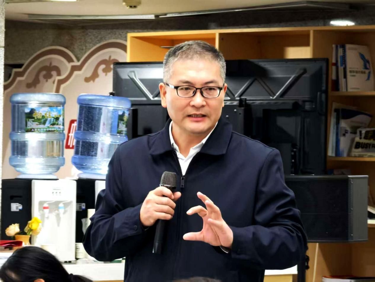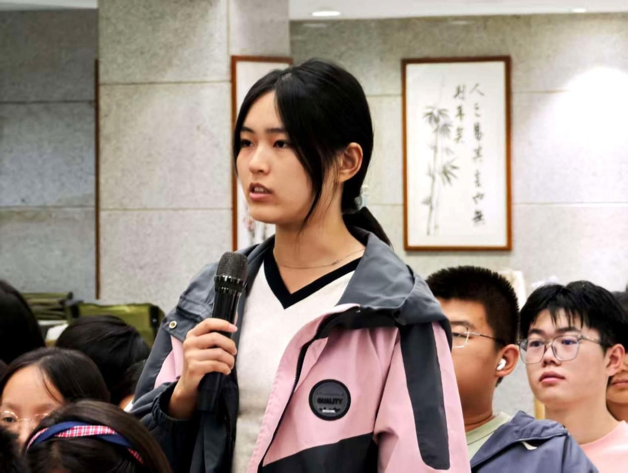 在践行经典环节,吴时舫结合历史典故与当代实践,生动阐述“善”的现实意义。她从范蠡“三聚三散”的财富观,到范仲淹设立义庄延续九百年的济世善行;从邵逸夫倾资助教助医,到“蓝天救援队”无畏奉献的志愿精神;再到学校“格桑花”“雪莲花”支教团队扎根边疆的青春力量,以及“一带一路”倡议下中国援非疾控中心、菌草技术推广等惠民项目,层层递进,展现“善”在古今的实践维度。她鼓励大家从身边小事做起,善待他人、勤读善思,将“兼善天下”的宏愿转化为日常行动。