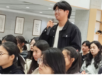 文学与传媒学院周诗瑞同学以《种树郭橐驼传》中的“顺木之天”为例,解析“无为”背后的治理智慧,并援引周恩来总理一生清廉奉献的事迹,进一步说明“无我”境界的现实典范。